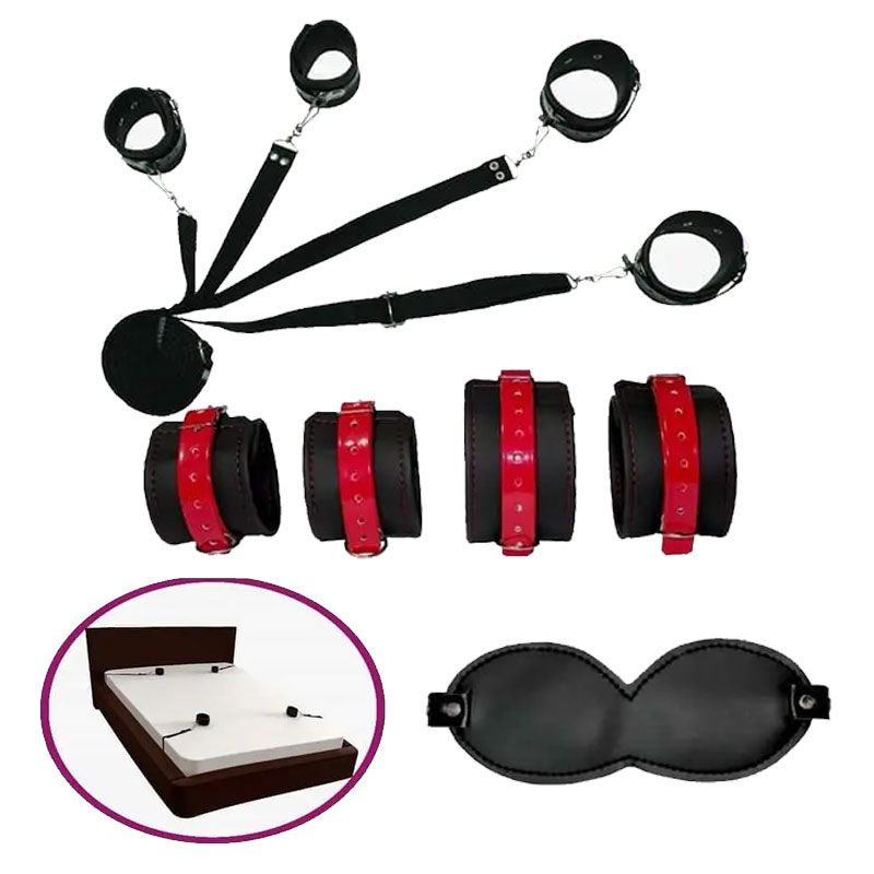 Arriésgate a vivir experiencias placenteras y atrevidas con tu pareja. Ataduras de cama en cuero sintético ajustables.