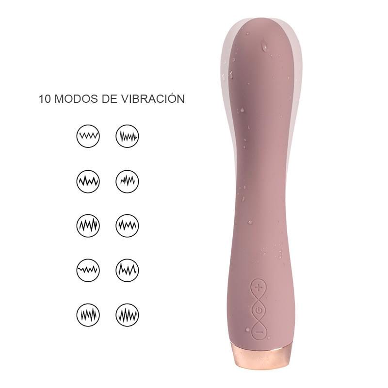 Moderno y tentador vibrador con 10 funciones de vibración con un diseño curvado perfecto para la estimulación y el placer. Llévate donde quieras y úsalo cuando quieras, es totalmente impermeable y recargable por USB.